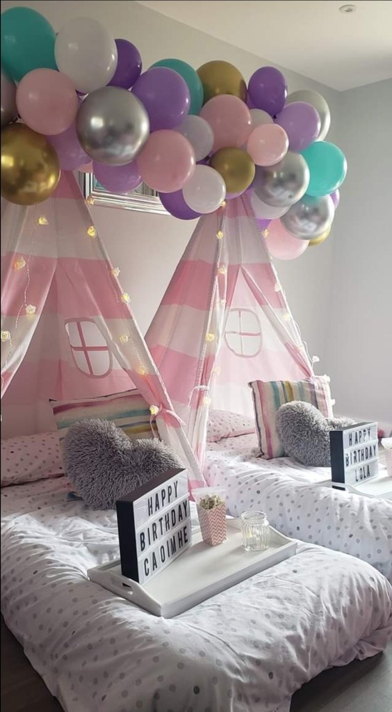 These Tepee tents are the perfect hire choice for a special occasion, best friends sleepover or a family film night with the kids. Package comes complete with 2x tents, air beds, pillows, bedding, cushions, lap trays, popcorn, sweet cones, tealights, and a selection of fidget toys.